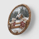 Winter cabin with mittens round clock