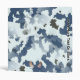 A white, blue and green, digital-style, winter camouflage pattern. There are two places on the front for you to customize by adding your own text, and another on the spine.