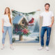 Winter Cardinal on a Festive Birdhouse Fleece Blanket