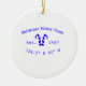 Winter Christmas house blue candy canes est. Year Ceramic Ornament