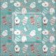 A cozy pattern of hand drawn mittens with unique doodled designs on each mitten. Coloured in a modern Christmas colour palette of mint blue & pastel colours.