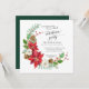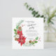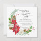Square format | Winter Christmas celebration party invitation. Simple. Modern. Elegant. Featuring: a crescent wreath with red poinsettia flowers, mixed with white wild roses, Holly with berries, Mistletoe, pine cones and leaf sprigs. Copyright.