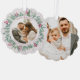 Celebrate the season with this beautiful Christmas ornament card, featuring hand-painted winter wreath in a variety of green and sage tones accented with red berries that elegantly frame your family photo on the front. The back showcases a full photo that covers the entire round ornament shape, creating a stunning double-sided design.