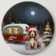 Winter Cocker Spaniel Caravan Christmas Adventure 6 Inch Round Button