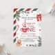A festive winter-themed first birthday invitation featuring cocoa elements, candy canes, snowflakes, pine greenery, and a red gift box. Designed with warm seasonal colors and elegant typography, this layout is perfect for a cozy holiday celebration. Ideal for girls’ first birthdays, winter parties, and themed events with a sweet cocoa-inspired motif. Fully customizable for names, date, venue, and RSVP details.