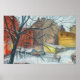 Winter Courtyard Landscape Pastel Painting Art Poster