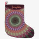 This personalized 2-sided custom-made Christmas Stocking features a fascinating abstract vision of a large Dahlia created with layers of interlocking gears in warm, muted colours such as Thyme Green, Fig, Malaga, Antique Rose, Lint Green, Clay, GrapeAde and Lupine. From an original painting by digital artist, Leslie Sigal Javorek. Choose from 3 Fabrics.