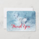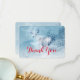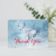 A thank you card with an image of a majestic deer in wintertime. An icy blue filtered background gives this photo a cold winter look with a magical feel. A noble deer stands on a hill with wintery pine trees in the background A message on the back can be customized or left as is.