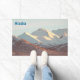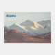A bald eagle flies in front of the snow-covered Chugach Range near Anchorage, AK. Customizable text reading "Alaska" also appears.