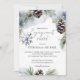 Winter engagement watercolor snowy pines editable template invitation instant digital download. Snowy pines with pine cones snowflake muted Scandinavian winter colours modern casual font
