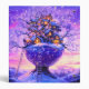 Whimsical glowing tree village perched above the snow. Tiny warm lit cabins nest among frosted branches, while the spherical, glitter stars like a miniature galaxy.