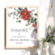 The Winter Floral Bridal Shower Welcome Poster captures the romance and beauty of a winter wonderland with a touch of festive charm. The design features a watercolor illustration of evergreen branches dusted with snow, creating a soft, enchanting backdrop for a celebration. Red florals and berries are interwoven with the greenery, giving the design a seasonal, yet elegant, winter feel. The modern, unique script adds a personal and contemporary touch, with flowing letters that evoke a sense of warmth and joy amidst the snowy landscape. The contrast of deep greens and bright reds enhances the festive mood, making this item perfect for a winter bridal shower. Matching items available.