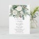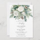This Christmas, winter wedding invitation embodies rustic elegance with its enchanting watercolor design, featuring a botanical and floral bouquet with a winter theme, with white roses, pine branches, evergreens and pine cones in an elegant arrangement in a watercolor painting. Perfect for couples who love art and unique designs, elegant country rustic, bohemian, and romantic themes, this invitation is an ideal choice for Christmas wedding invitations or for winter wedding invitations.