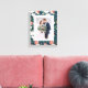 Our elegant, Winter Floral holiday canvas print features your photo framed in white with a pattern of watercolor poinsettia flowers, ivory flowers, holly berries, and lush green foliage against a navy background.