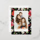 Winter Floral Pattern Black Christmas Photo Foil Holiday Postcard