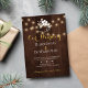 Rustic simple elegant winter farmhouse wedding stylish invitation template on maroon dark brown barn wood featuring a small white flowers bouquet and strings twinkle lights. ++++++++ Personalize with your details! You can choose to customize it further changing fonts and colours of lettering. ---- The invitation is suitable for elegant winter rustic country / mountains resort weddings.