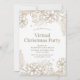 Winter Floral Virtual Christmas Party Online Holiday Invitation features a taupe pine cone floral border on a white background. Add your personalized information by editing the text in the text boxes provided for your Virtual Christmas Holiday Party Invitations.