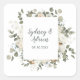 These winter floral wedding envelope seals are perfect for an elegant wedding. The modern design features white flowers with winter greenery and eucalyptus leaves, with a simple country feel.