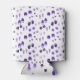 This can cooler has a winter design of different forest animal footprints crossing paths.