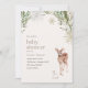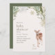 Adorable baby shower invitation features winter forest foliage, woodland animals and snowflakes. Personalize with your information or click "Click to customize further" to edit font styles, size and colours.