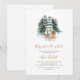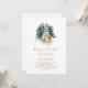 Celebrate the mom-to-be with this gender neutral winter baby shower invitation featuring a watercolor illustration of a fawn and a deer in front of a snowy forest.
