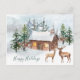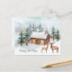 Celebrate the season with this elegant winter holiday Postcard. This design depicts a watercolor illustration of winter woodland scene - the fir trees, log-cabin and two deer. You can adjust text according to your requirement