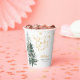 Stylish gender neutral winter baby shower paper cups. Design features a modern calligraphy script font, gold snowflakes and watercolor forest trees. NOT ACTUAL GOLD FOIL