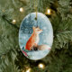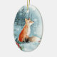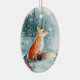 Winter forest, log cabin, fox Ceramic Ornament