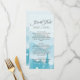 Complete your reception table setting with these Winter Forest Pine Trees Mountain Wedding Menu Cards. Designed in a modern dusty blue tone, the cards feature snowy pine trees and a mountain backdrop for a cozy winter woodland look. Perfect for rustic, forest, or mountain weddings.