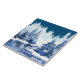 Winter Forest Scene ceramic tile. Image of Trees covered in snow next to a river at night.