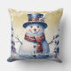 Winter Forest Snowman Christmas | Gold Throw Pillow