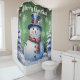 Add a whimsical touch to your bathroom this holiday season with a Green Winter Forest Snowman Christmas Shower Curtain. Shower curtain design features a cute snowman in a charming top hat and scarf standing in a winter forest scene with falling snow. Additional bath and home decor available with this design.