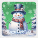 Winter Forest Snowman Merry Christmas | Green Square Sticker