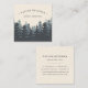 Unique square business cards for adventure guides, tour guides or any outdoor type occupation feature a forest of pine tree silhouettes in wintry shades of blue, with your name and business name, title or occupation above. Add your full contact details to the back in midnight blue lettering.