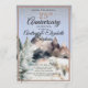A winter-themed anniversary invitation featuring snowy mountains, falling snow, evergreen trees, and watercolor polar bears, with elegant script typography, a soft pastel color palette, and a serene Arctic wilderness atmosphere; perfect for a winter birthday, milestone celebration, rustic winter party, or nature-inspired event. Perfect for those who would love the outdoors and a rustic winter aesthetic.
