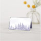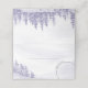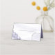 Winter wedding reception table place cards with scenic watercolor design in shades of lavender and grey. The snow scene features a romantic mountain forest landscape with pine trees, drifts and a light snow flurry. The inside is personalized with the name of the bride and groom and the wedding date. If you would like matching products, please browse my Winter Forest collection.