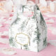 These modern, holiday wedding favour boxes feature a trendy winter pattern of green pine trees, bare forest branches, and lots of snow, with a faux gold frame in the centre.