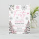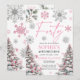 Forty Birthday invitations with pink and silver snowflakes and pine trees. Ideal for your 40th winter birthday party.