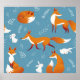 fox, snow, illustration, seamless, winter, decor, background, christmas, pattern, texture, paper, nature, cartoon, forest, gift, poster, animal, retro, happy, face