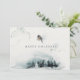 Winter frost woodland Christmas cards. Happy Holidays text fully customizable. Snowy woodland forest with a watercolor wash background. Floral wreath on back of card. Featuring a little winter bird, the Tufted Titmouse on the front of the cards.