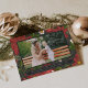 Elegant holiday photo card features your favorite image on a winter botanical patterned background of red poinsettia flowers, festive green foliage and tiny white blossoms. Personalize with your custom greeting, name(s) and the year, then add two additional photos and more text to the back, on a matching patterned background.
