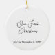 The reverse side offers even more personalization, with room to add a name, event, or detailed date information to make the ornament truly unique. By default, the back reads "Our First Christmas", making it a ready-to-gift keepsake for couples, families, or friends celebrating a milestone.
