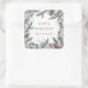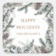 Winter Greenery Blue Happy Holidays Monogram Square Sticker