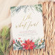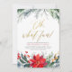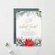Invite friends or colleagues to celebrate the season with these elegant holiday party cards. The design features "Oh, what fun!" in beautiful gold script lettering, with your party details below in simple typography. The text is framed by a hand-painted border of fir, pine, winter berries, lush greenery, and a red poinsettia flower. These cards reverse to a peaceful teal watercolor image. Easily edit the front text with your party information!