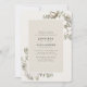 Elegant Winter wedding invitation featuring a watercolor evergreen greenery with white flowers and poinsettia around a frame