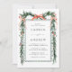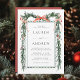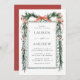 This wedding invitation features a watercolor winter greenery garland adorned with pine branches, holly berries, botanical foliage, red ribbon bows, and elegant calligraphy. For more advanced customization of this design, please click the BLUE DESIGN TOOL BUTTON above! Matching items are also available.