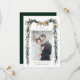 This wedding photo save the date features a watercolor winter greenery garland adorned with pine branches, holly berries, botanical foliage, gold ribbon bows, and simple calligraphy. For more advanced customization of this design, please click the BLUE DESIGN TOOL BUTTON above! Matching items are also available.