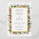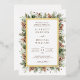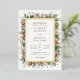 Ce véritable faire-part de mariage de vacances d'hiver en feuille d'or présente une aquarelle peinte à la main et des pinecones disposés comme un beau cadre. Le texte est brun et l'arrière - plan blanc. Le fond comprend un élégant bouquet assorti. Trouvez les articles correspondants dans la collection Vacances de Noël Pinecone and Greenery.