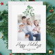 Cette carte Holiday simple et élégante est décorée avec de l'aquarelle, de la verdure et de la typographie de script. Facilement personnalisable avec votre photo. Aquarelle originale © Michele Davies.