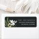 Elegant botanical return address labels for your holiday cards or everyday correspondence feature a rich charcoal off-black background adorned with green botanical sprigs, foliage, leaves and white lily of the valley flowers. Designed to match our Winter Greenery holiday collection.
